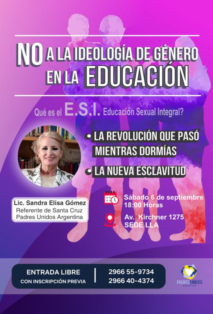 El encuentro busca poner en evidencia cómo, bajo el disfraz de la Educación Sexual Integral (ESI), se instaló un adoctrinamiento ideológico que avanza sobre la familia y los valores tradicionales. Desde la organización remarcaron que “la ESI no es educación, es imposición”, y llamaron a los padres santacruceños a involucrarse de lleno en la defensa de sus hijos.